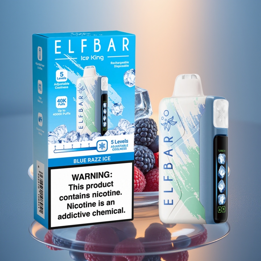 Elf Bar Ice King 40K Puffs Rechargeable Dual Airflow Disposable Vape Blue Razz Ice
