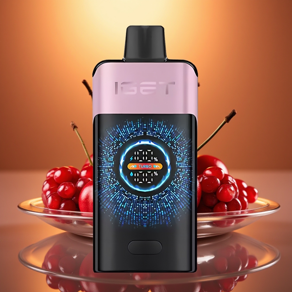 IGET ONE 12000 Puffs Turbo Disposable Vape with Curved Screen & Dual Mesh Coil – Cherry Pomegranate