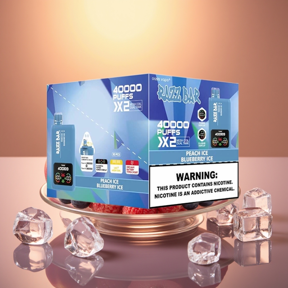 Razz Bar 40000 Puffs Power Screen Mesh Coil Disposable Vape Peach Blueberry Ice