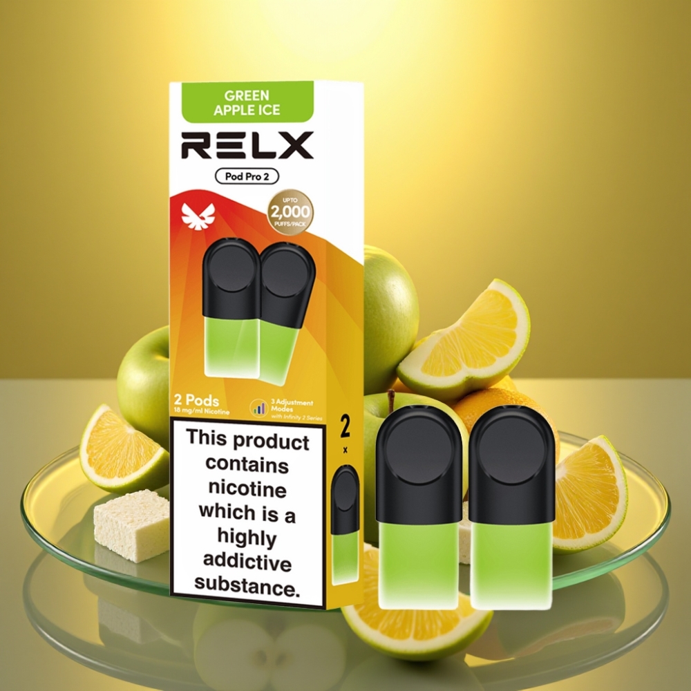 RELX Pod Pro 2 1.8% Green Apple Ice 600 Puffs 3-Mode Vape