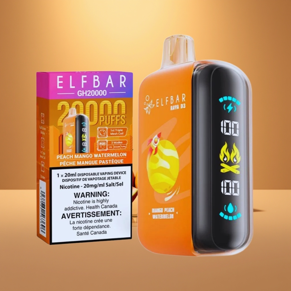 ELF BAR RAYA D3 25000 Puffs 23mL 5% Mango Peach Watermelon Disposable Vape