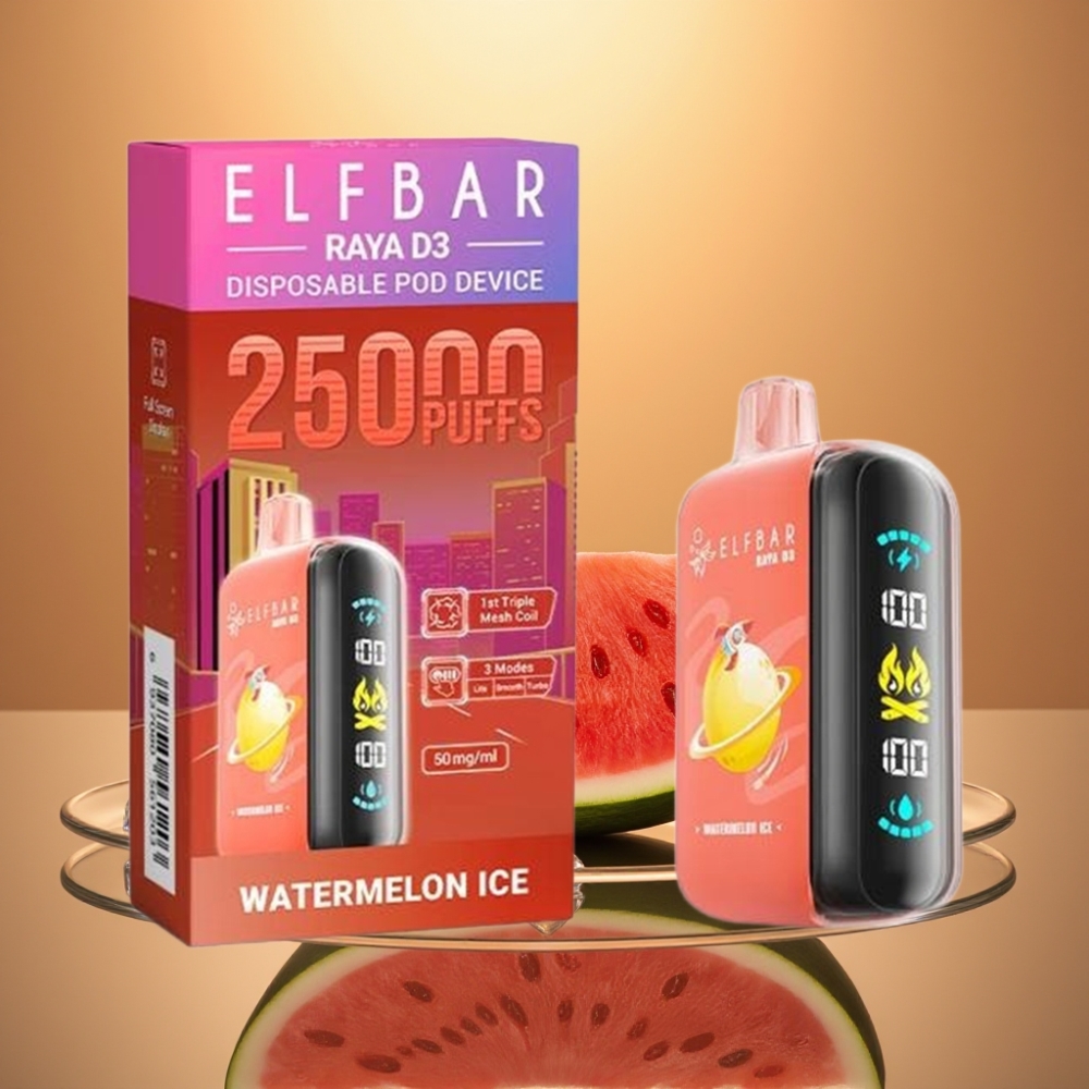 ELF BAR RAYA D3 25000 Puffs 23ml 5% Rechargeable Disposable Vape Watermelon Ice