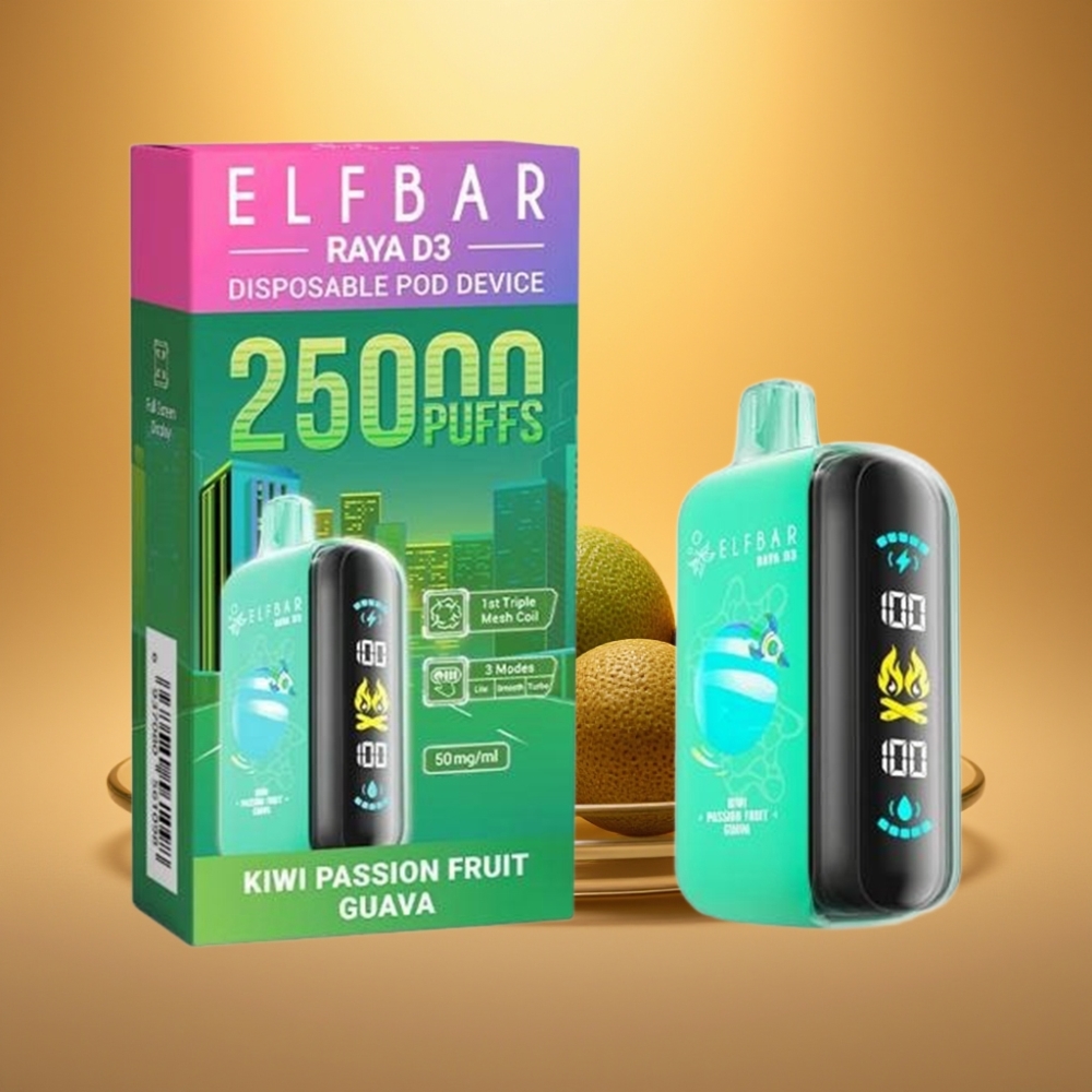 ELF BAR RAYA D3 25K Puffs Rechargeable Disposable Vape – Kiwi Passion Fruit Guava