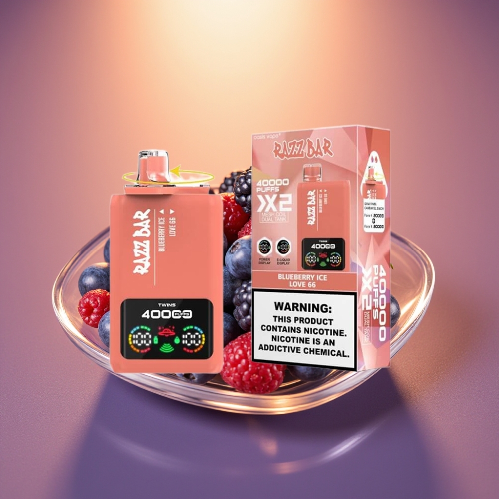 Razz Bar 40000 Puffs Power Screen Display Blueberry Ice Love 66 Disposable Vape