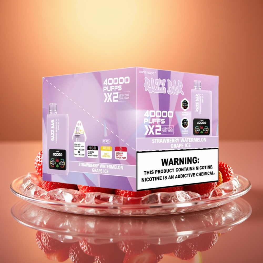 Razz Bar 40000 Puffs Power Screen Disposable Vape – Strawberry Watermelon & Grape Ice