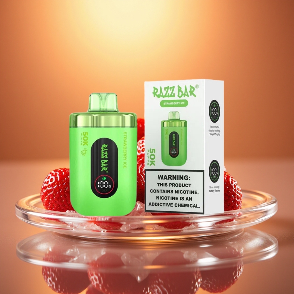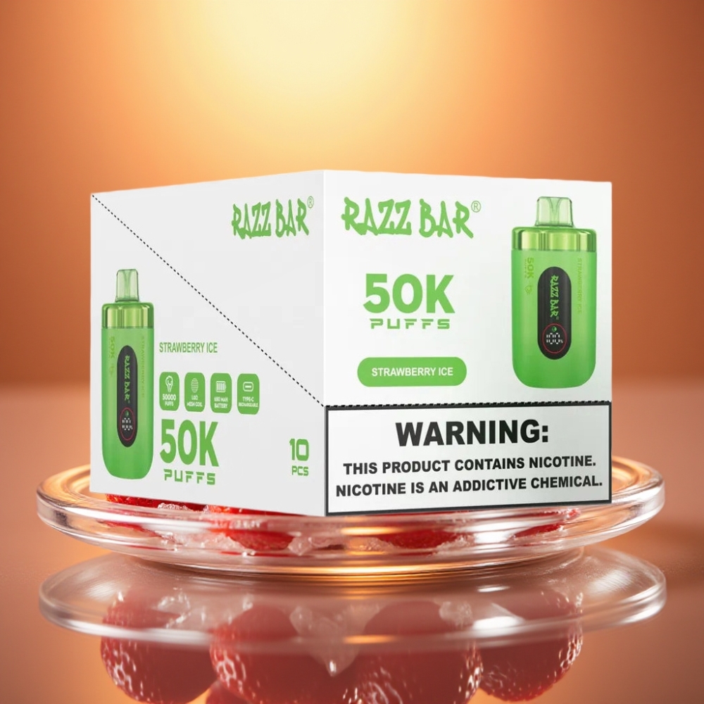 Razz Bar 50K Puffs Strawberry Ice Disposable Vape with Mesh Coil & Rechargeable Battery